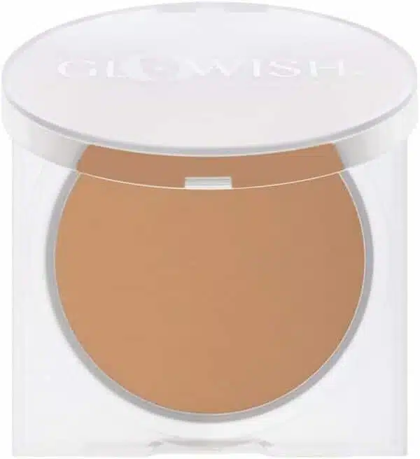Rozświetlający, wygładzający i oddychający puder kompaktowy do twarzy Glowish Luminous Pressed Powder od Huda Beauty do utrwalenia makijażu bez efektu maski!